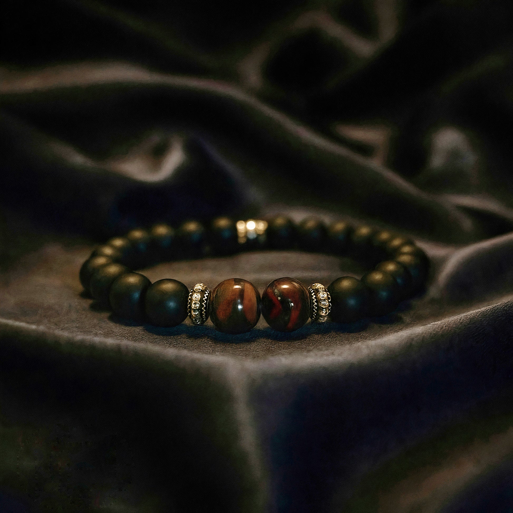 Power in silence — Black Onyx & Red Tiger Eye Bracelet: Grounded energy with a fierce edge.