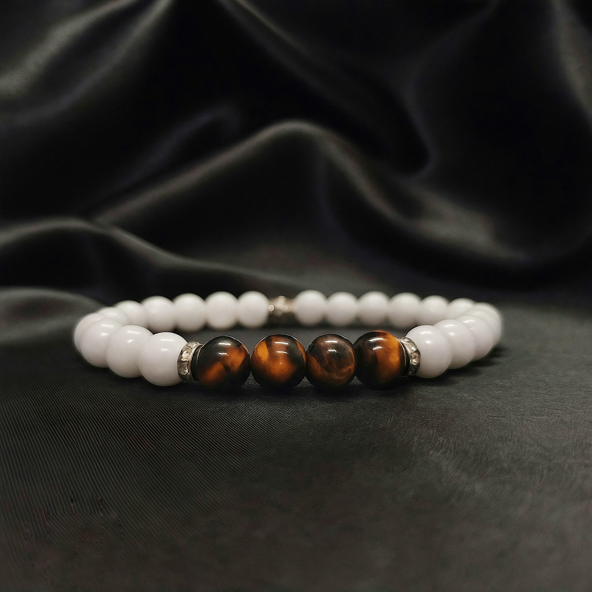 Clarity and strength — White Agate & Tiger Eye Bracelet: Balance your mind, awaken your fire.